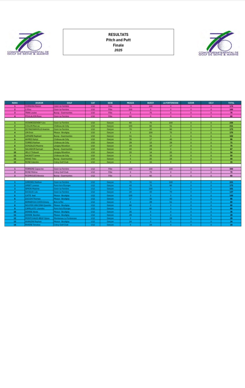 Rien est joué pour le podium , il reste 2 tours ,au Golf d’Ozoir le 21/05 et la finale le 28/05 au golf de Cely où une fête se prépare !