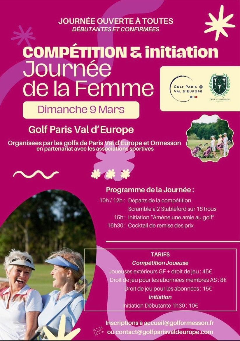 Inscription à l'accueil du golf ou par mail: contact@golfparisvaldeurope.com